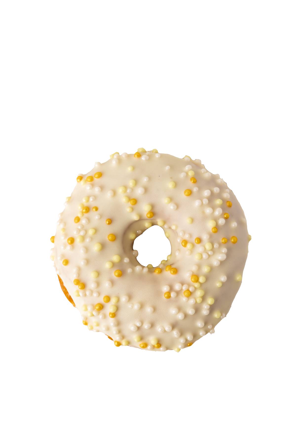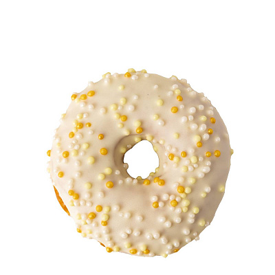 Нежный десерт с гладкой текстурой и ванильным ароматом. Внутри — сливочная начинка, которая гармонично сочетается с глазурью. Ванильный донат оставляет приятное послевкусие
